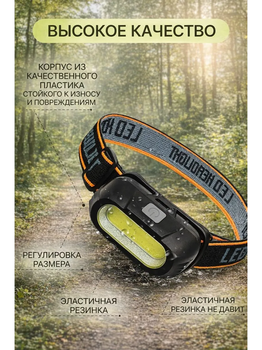 Налобный фонарик освобождает руки для работы, а яркие светодиоды дают мощное освещение пространства.