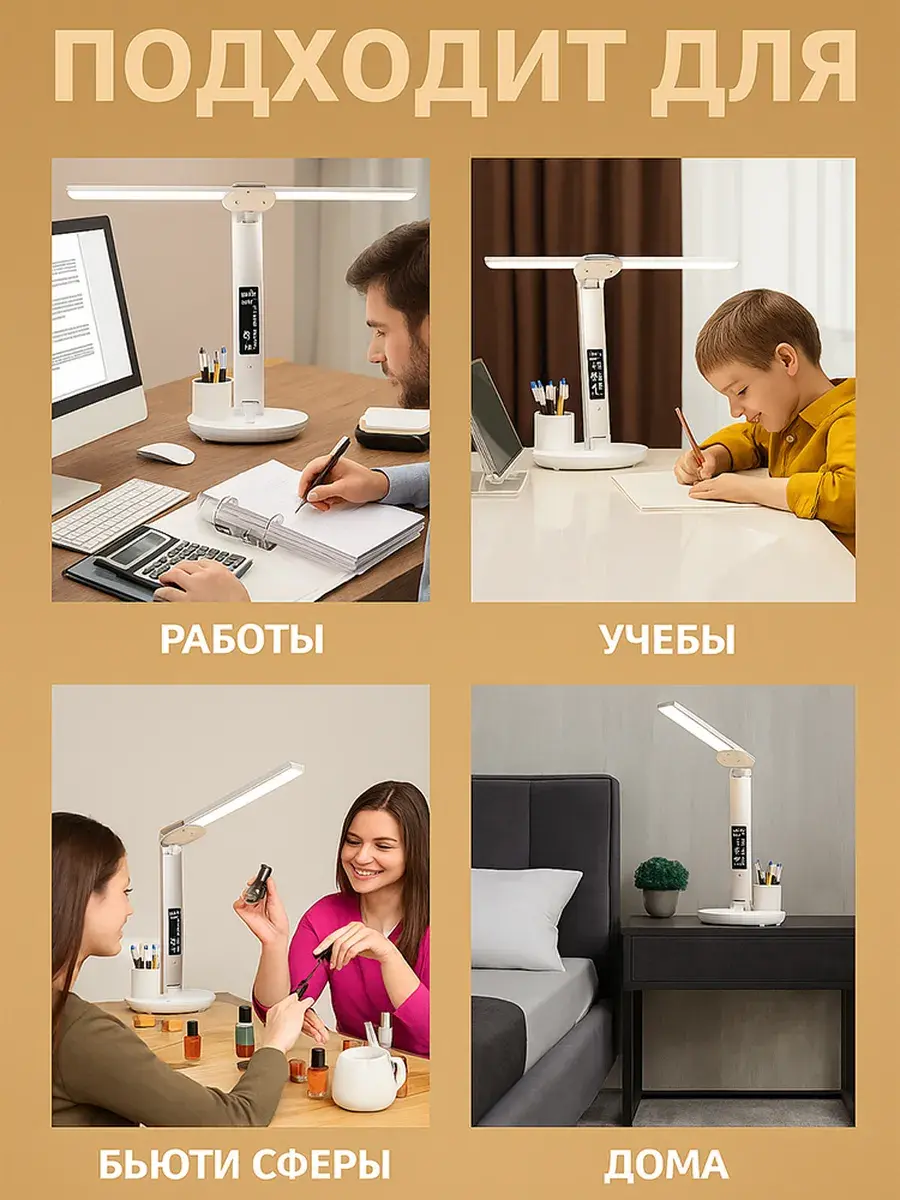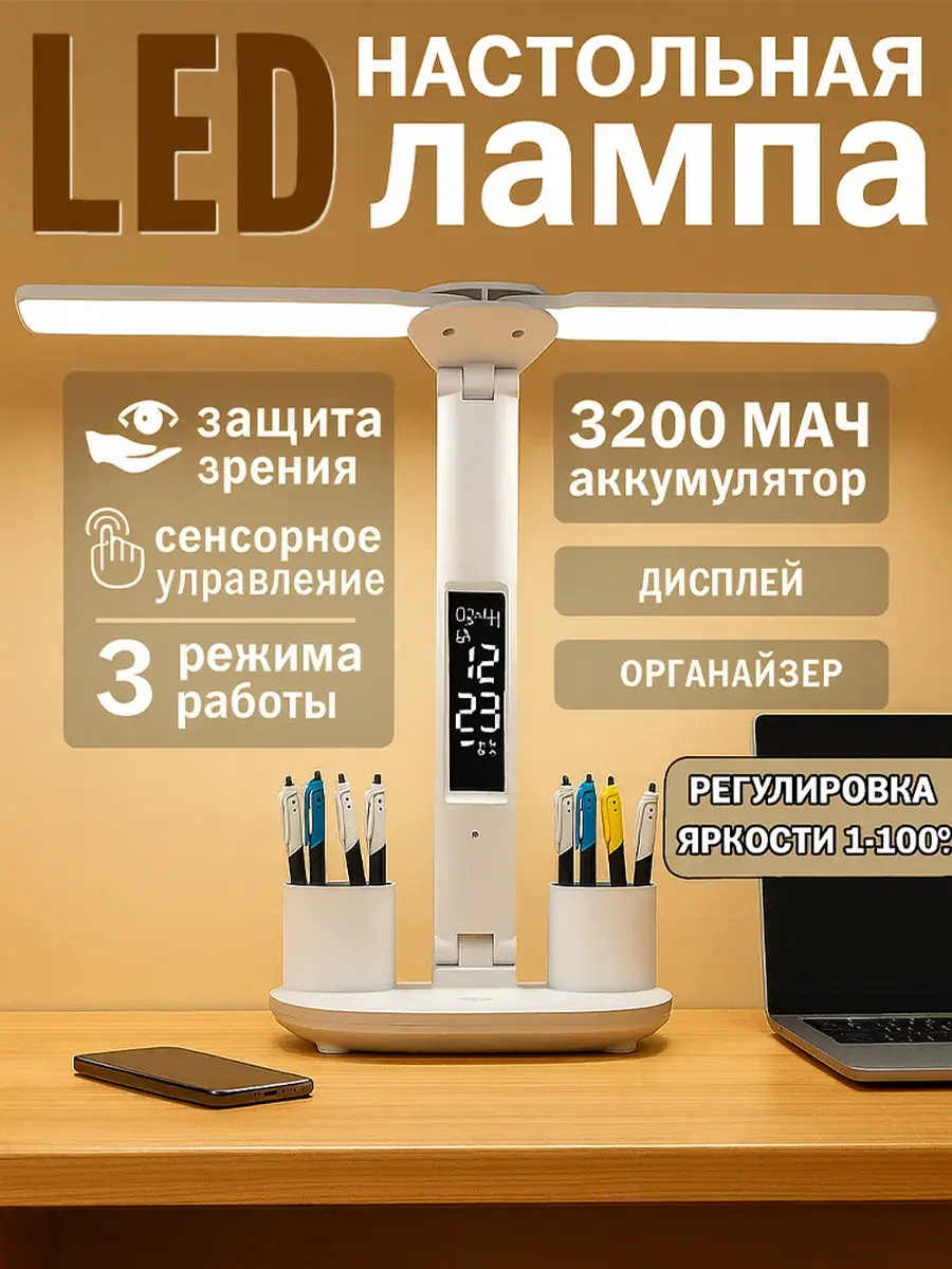 Лампа создает равномерное освещение без мерцания, обеспечивая комфорт для глаз. Благодаря гибкой ножке вы можете легко направить свет в нужную область, а сенсорное управление позволяет быстро настроить подходящий режим работы.