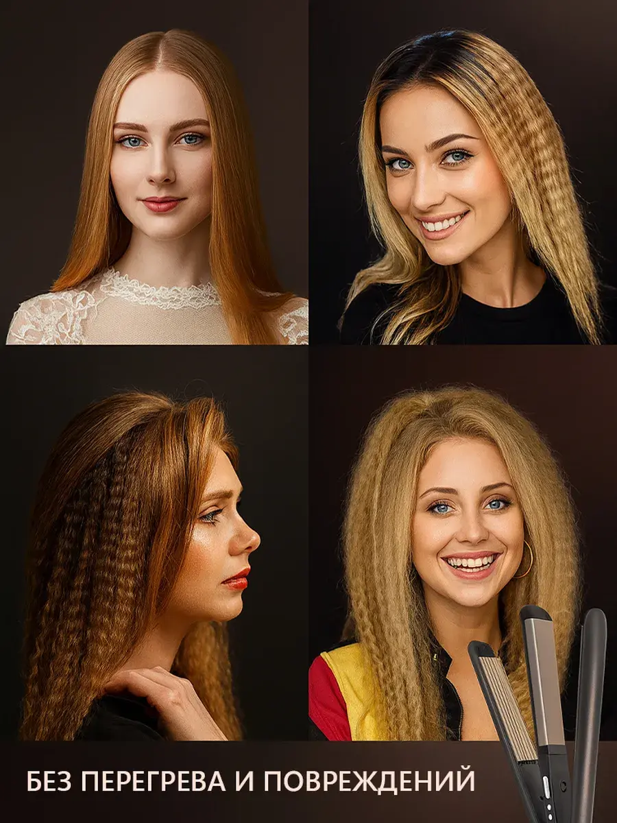 Универсальный стайлер, который справляется с укладкой любой сложности. Утюжок-гладилка и гофре в одном устройстве — это экономия места, времени и денег. Подходит для ежедневного использования дома и в поездках.
