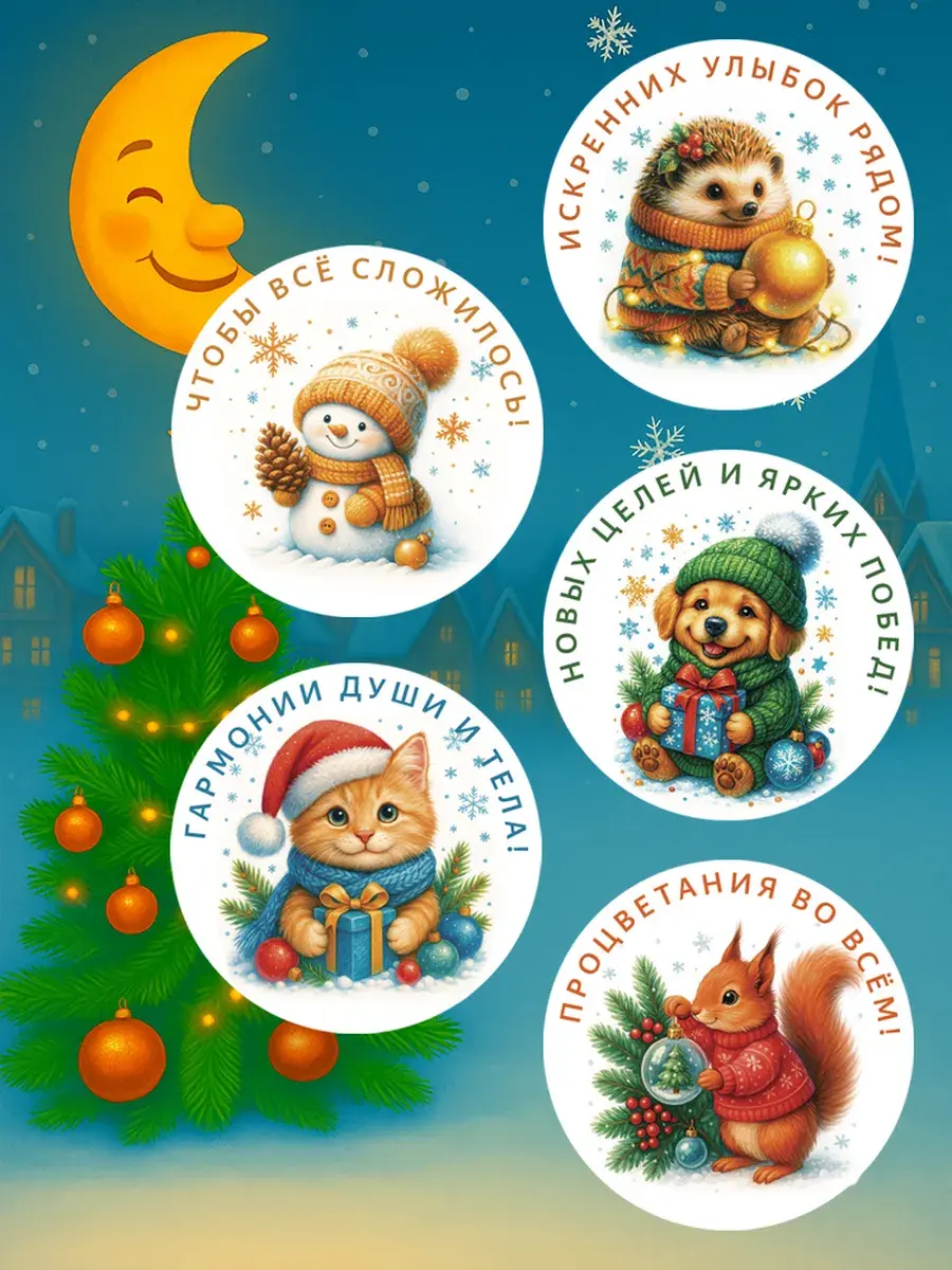 Тематика охватывает и Новый год и Рождество, поэтому стикеры легко подобрать под любой повод – от детского подарка до приятного комплимента клиенту.