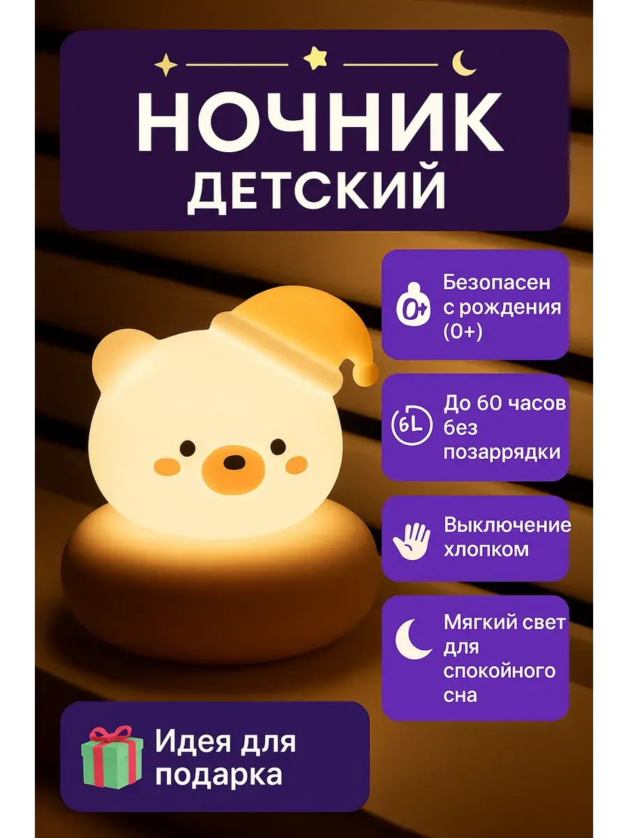Этот детский ночник с сенсором и USB станет настоящим помощником маме с первых дней жизни малыша.
