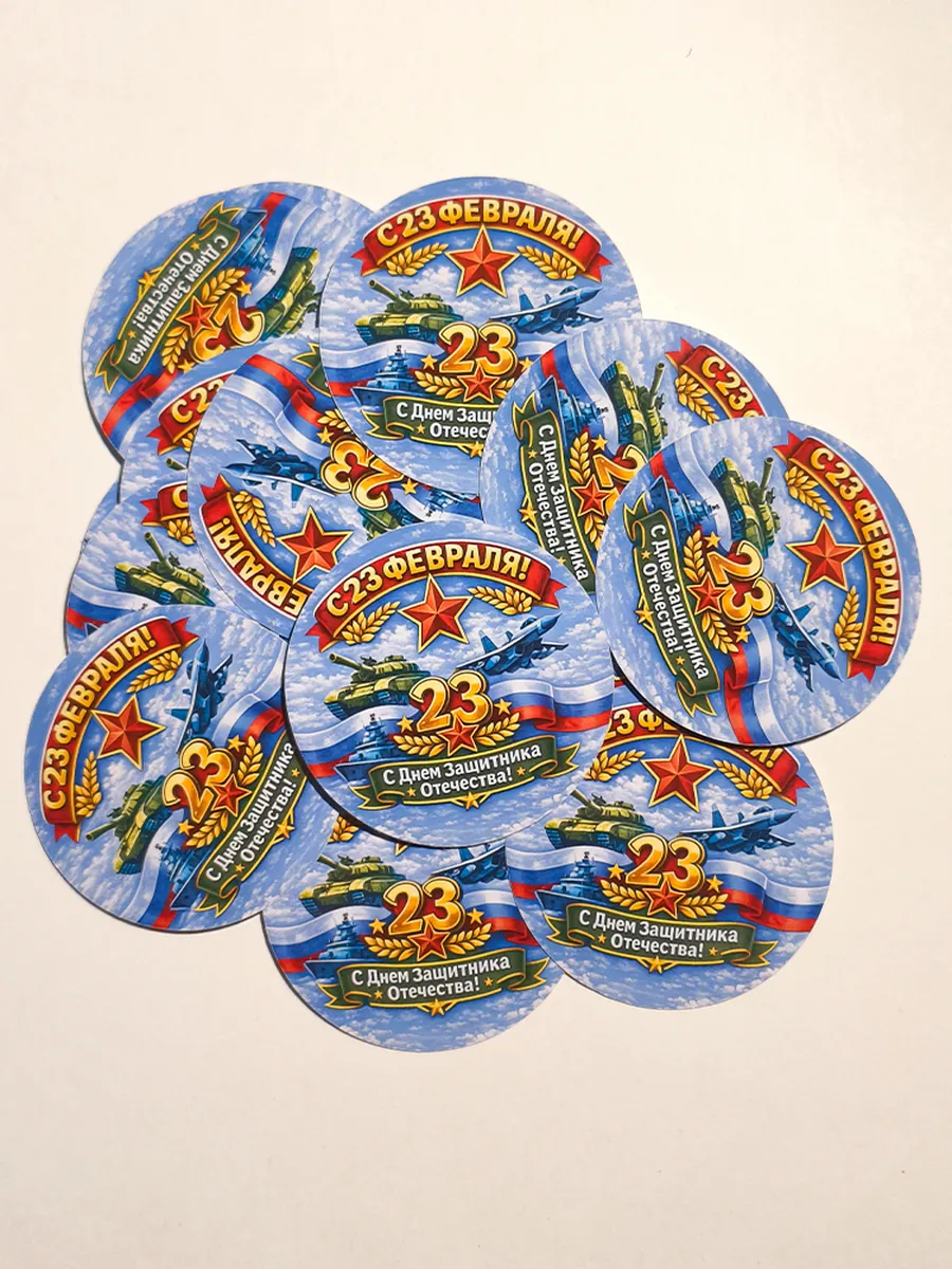 Стикер-наклейка для подарка с 23 февраля — это простой способ красиво оформить презент и добавить праздничное настроение! Круглая наклейка диаметром 67 мм с тематическим дизайном станет ярким акцентом на упаковке и открытках.