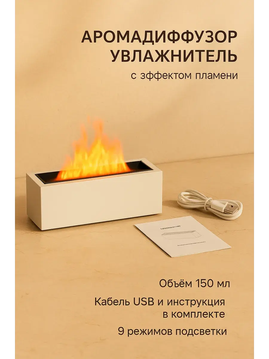 Ультразвуковой аромадиффузор-увлажнитель с эффектом пламени — это устройство, созданное для тех, кто хочет совместить стильный интерьер, комфортный микроклимат и ароматерапию в одном приборе. Компактная конструкция, аккуратный минималистичный дизайн и высокое качество сборки делают этот увлажнитель идеальным решением для дома и офиса. Он органично впишется в современный интерьер, создавая атмосферу уюта и спокойствия. Благодаря эффекту пламени устройство не просто выполняет техническую функцию: оно становится элементом декора, который притягивает внимание и задает настроение в помещении.